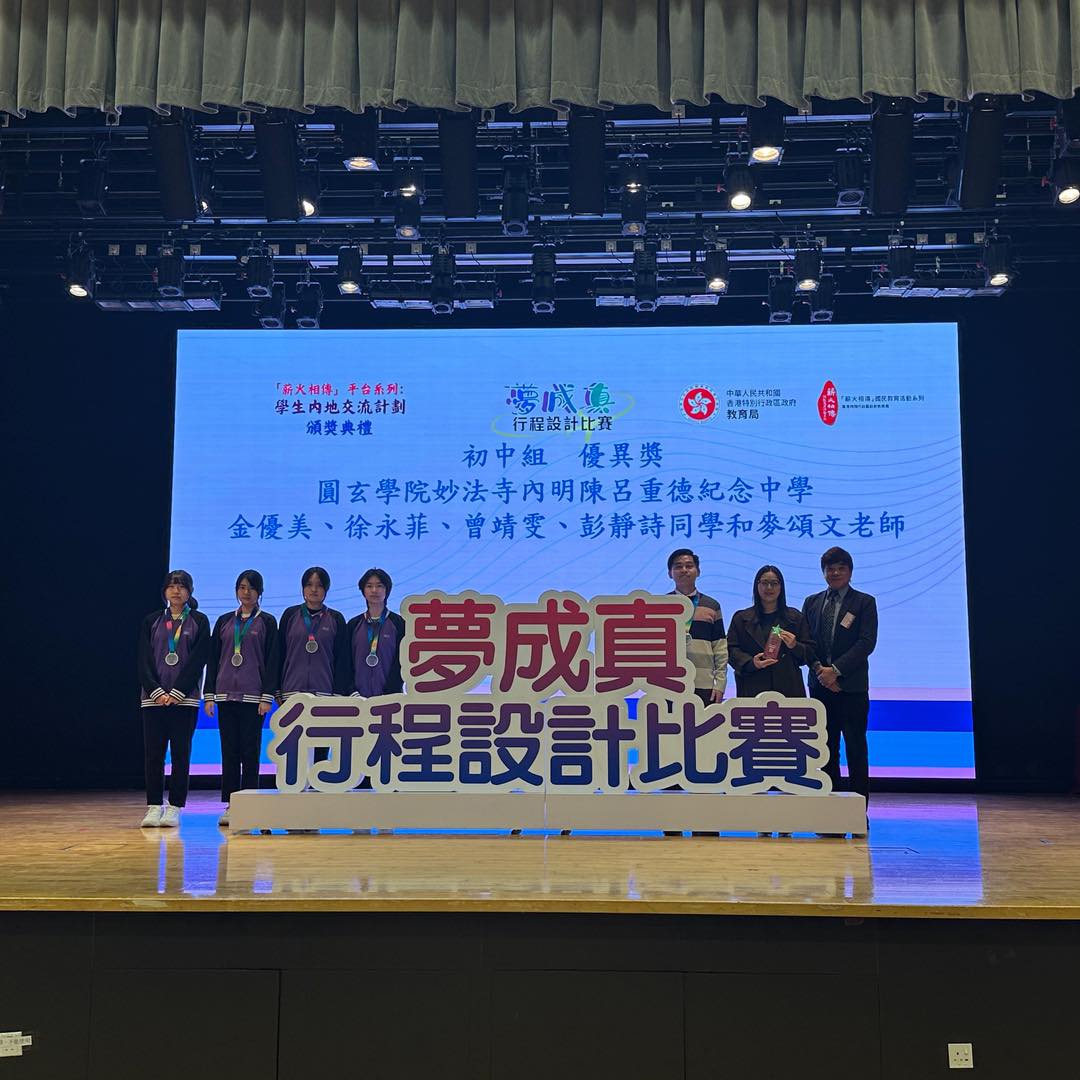 校師生早前參與由教育局主辦的「薪火相傳」平台系列——學生內地交流計劃「夢成真」行程設計比賽,從超過五百份作品中脫穎而出✨,榮獲初中組優異獎。